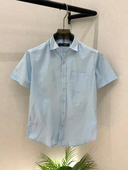 Home Shirts Hugo_Boss Sky Premium Half Sleeves Shirt With Brand Box Packing F3579-SK
